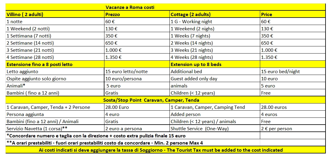 - The cost in the Green Space Area refers to a crew (Camper, Caravan, Tent) +2 people.